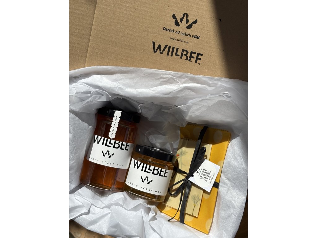 Darčekový box z úľa - large je kombinácia 1kg medu a 0,5kg medu so sviečkou so včelieho vosku, propolisovou tinktúrou alebo obrúskami so včelieho vosku.